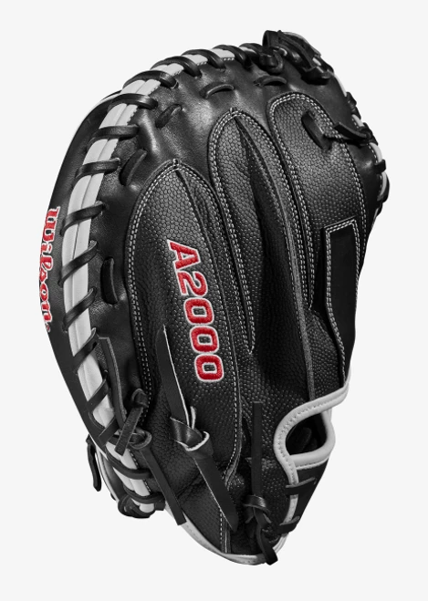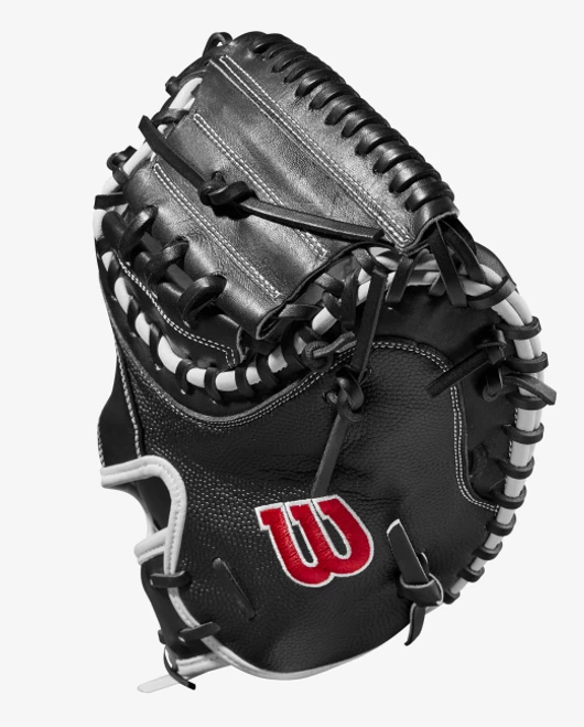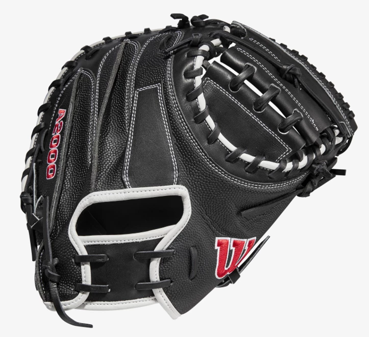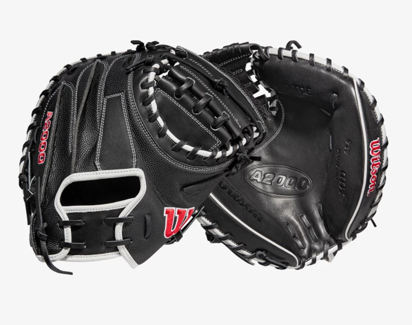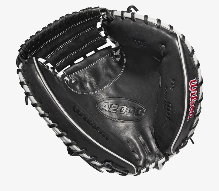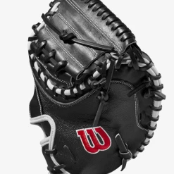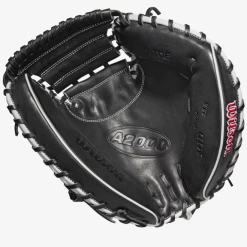 Frame every pitch on the black and get that called third strike for your pitcher with the 2022 A2000® M1DSS. The Black Pro Stock® leather palm and Half-Moon Web features a deep pocket preferred by elite backstops. A Black SuperSkin™ back on this 33.5” model improves durability and moisture resistance while reducing glove weight so you can set up the perfect target behind the dish.