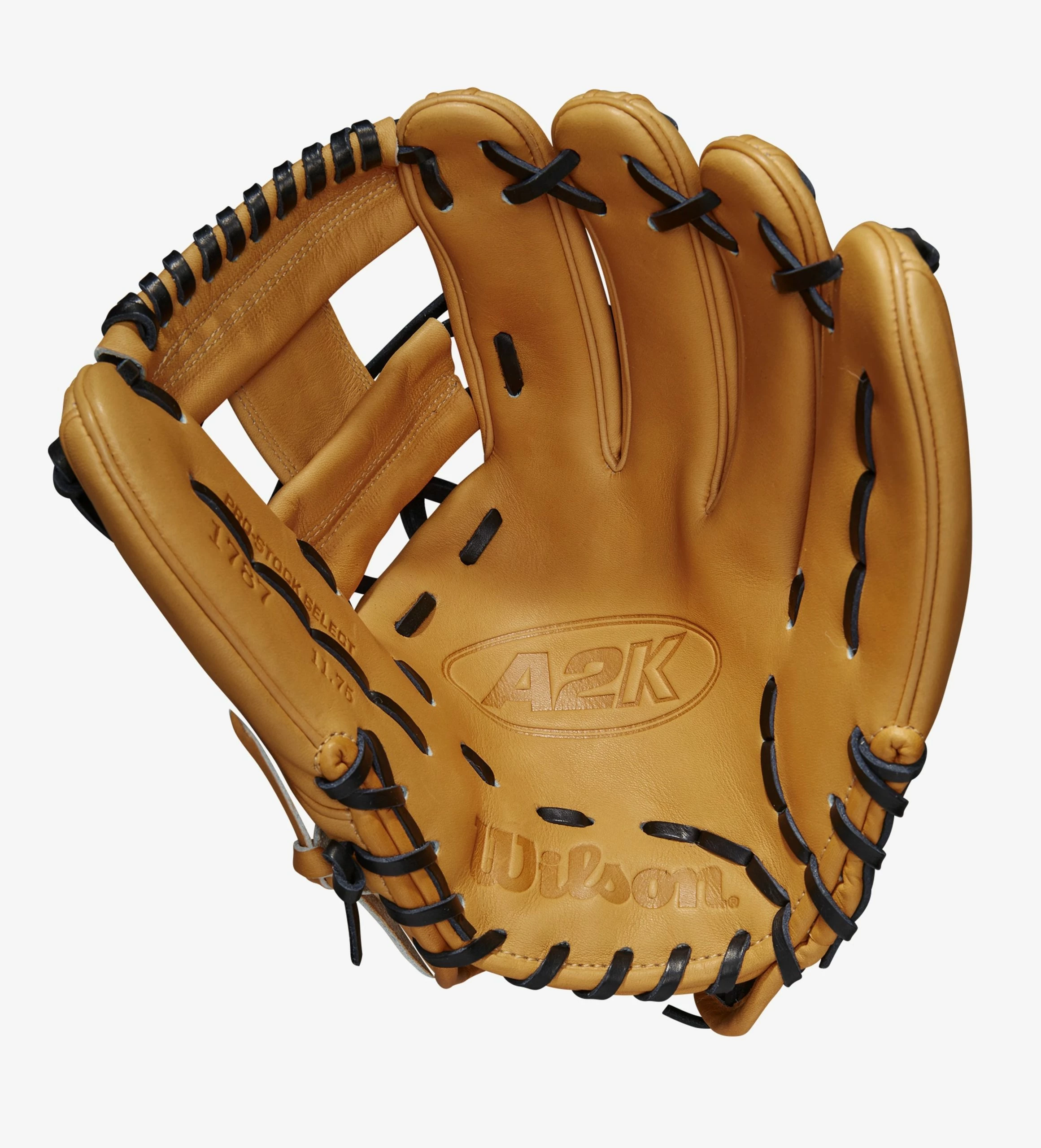 Timeless. The 2023 A2K 1787 boasts flawless Vintage Tan Pro Stockยฎ Select leather with Black laces to deliver an everlasting look on the infield dirt. This A2K checks in at 11.75โ to seize line drives at second base or backhand scorching grounders down the third base line. Sorted and scrutinized three times to ensure its perfection, the Pro Stockยฎ Select leather in Vintage Tan offers unprecedented durability and immaculate feel, and Double Palm Construction allows the player to break in and shape the glove to their preferences. Bold Logos outlined in Black ensure the A2K 1787 will draw everyoneโs attention.