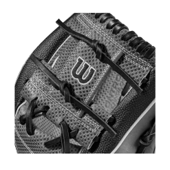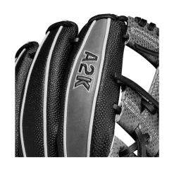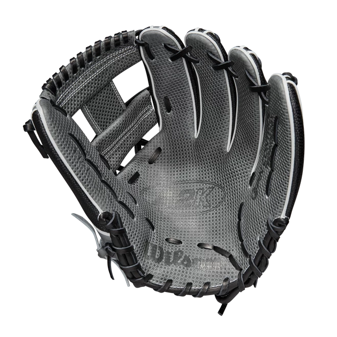 Haunt the opposition. The 2023 A2K® SC1787SS is designed to blanket every corner of the infield with its Coal Pro Stock® Select leather palm with Spin Control Technology™, a patented surface texture that increases friction against the ball to accelerate smooth transfers. At 11.75”, the A2K SC1787SS has the reach to pick the grounder at shortstop and backhand choppers at third base, and its Black SuperSkin™ fingers reduce glove weight while improving durability. With Black laces and Bold Logos outlined in White, the A2K SC1787SS 11.75” infield glove swallows up would-be hits.