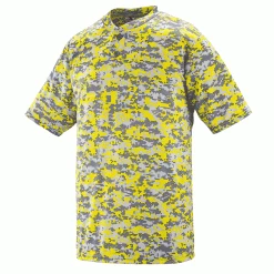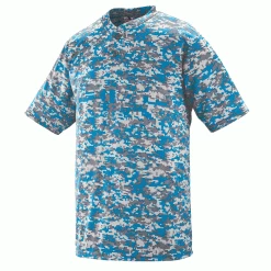 – Our Digi Camo Wicking 2-Button Jersey is roller printed for easy embellishment which reduces chance of dye migration so that multi colored team emblems are cripser and more virbrant in color compared to other brand camo jerseys