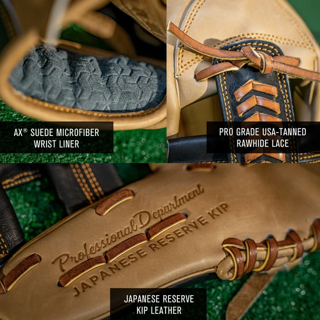 Introducing Easton’s all-new Professional Collection Kip Series. Handcrafted with premium Japanese Reserve Kip leather, durable USA-tanned lace and the ultra-comfortable Ideal Fit Systemâ„¢, the Pro Collection Kip gloves are built for the game’s elite players. Designed for ultimate comfort and pro performance, the Ideal Fit Systemâ„¢ features a laceless kip lining, a loopless thumb stall, spacious Kip fingerstalls, room for two in the pinkie, and an Ax® Suede back of wrist material.  Come see why the brightest stars in the game like Justin Turner, Ramon Laureano, Alex Bregman, Adalberto Mondesi, Jose Ramirez, Ketel Marte and Austin Hedges use the Easton Professional Collection. Once you try one on, you will not want to take it off.Â