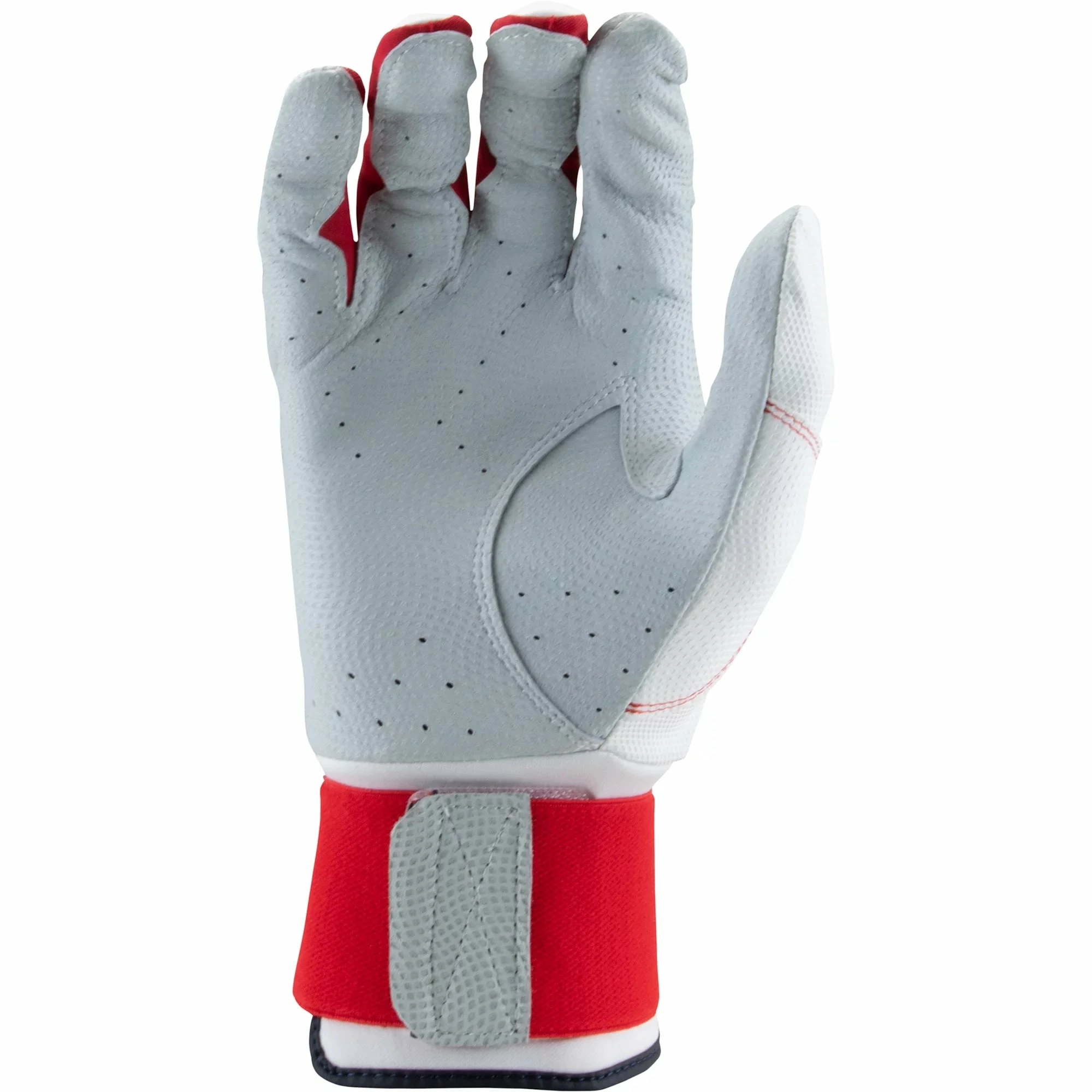 The Signature Full Wrap Batting Gloves are designed with digitally embossed, perforated cabretta sheepskin palm, finger break contours to decrease bunching between the fingers for a smoother fit and more comfortable grip, and a fully wrapping wristband for enhanced structure and support.