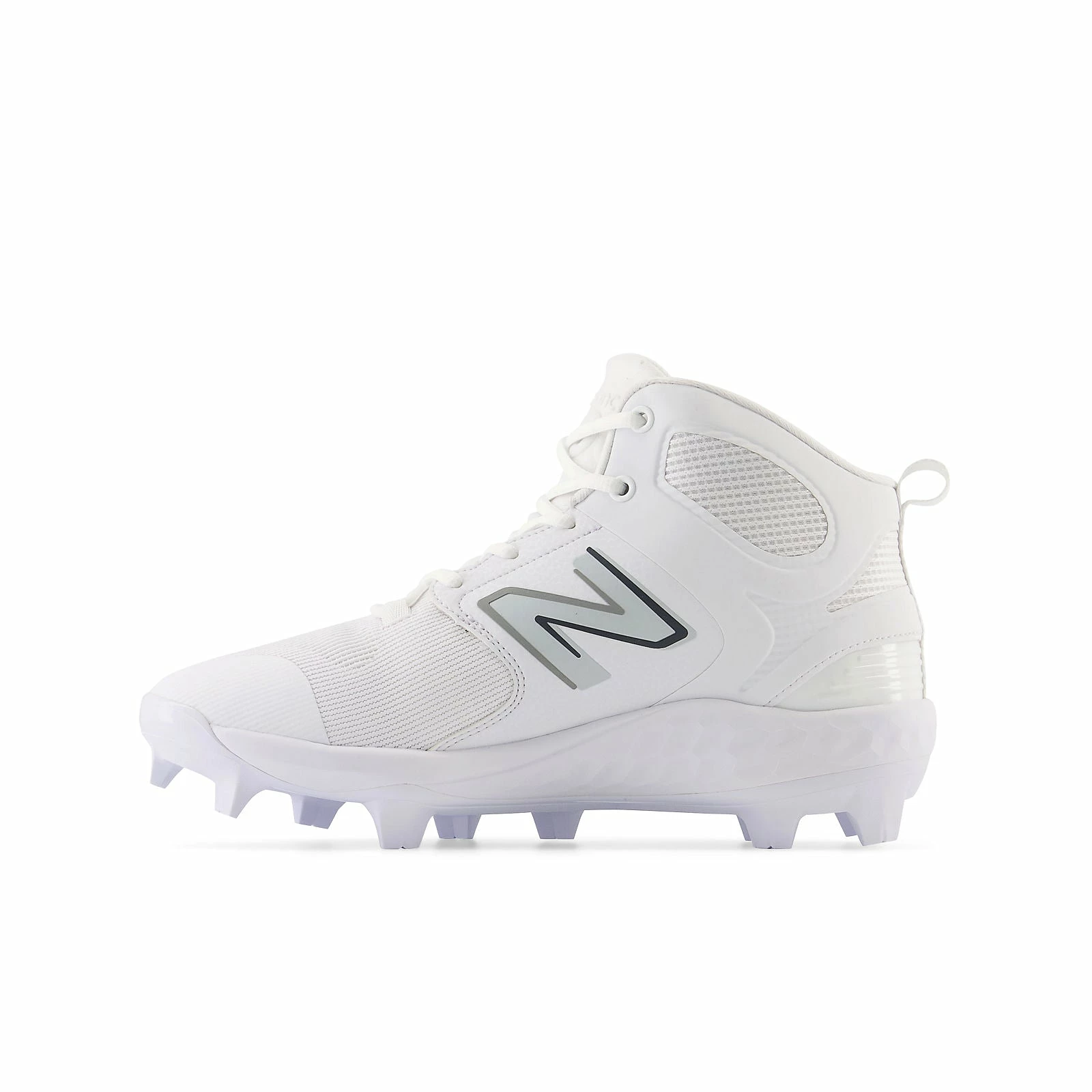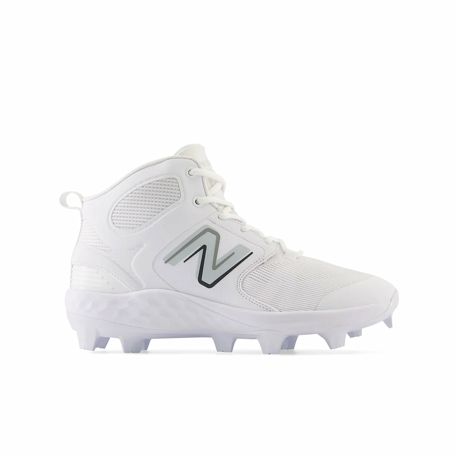 Our Fresh Foam 3000v6 Mid-Cut TPU cleats feature a synthetic/mesh upper with PU coating for breathability and durability on the field. The TPU molded cleat outsole provides traction on both turf and natural surfaces for versatility while the Fresh Foam cushioned midsole and mid-cut silhouette offers the comfort and ankle support needed for elite play.