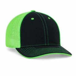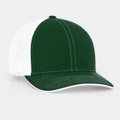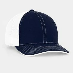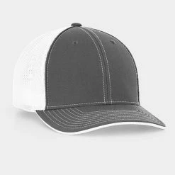 – 2 tone poly/twill panels with contrast stitching, white spandex trucker mesh back 4 panels