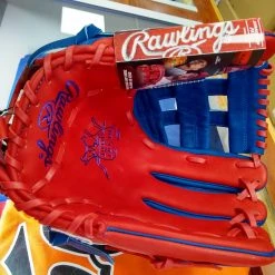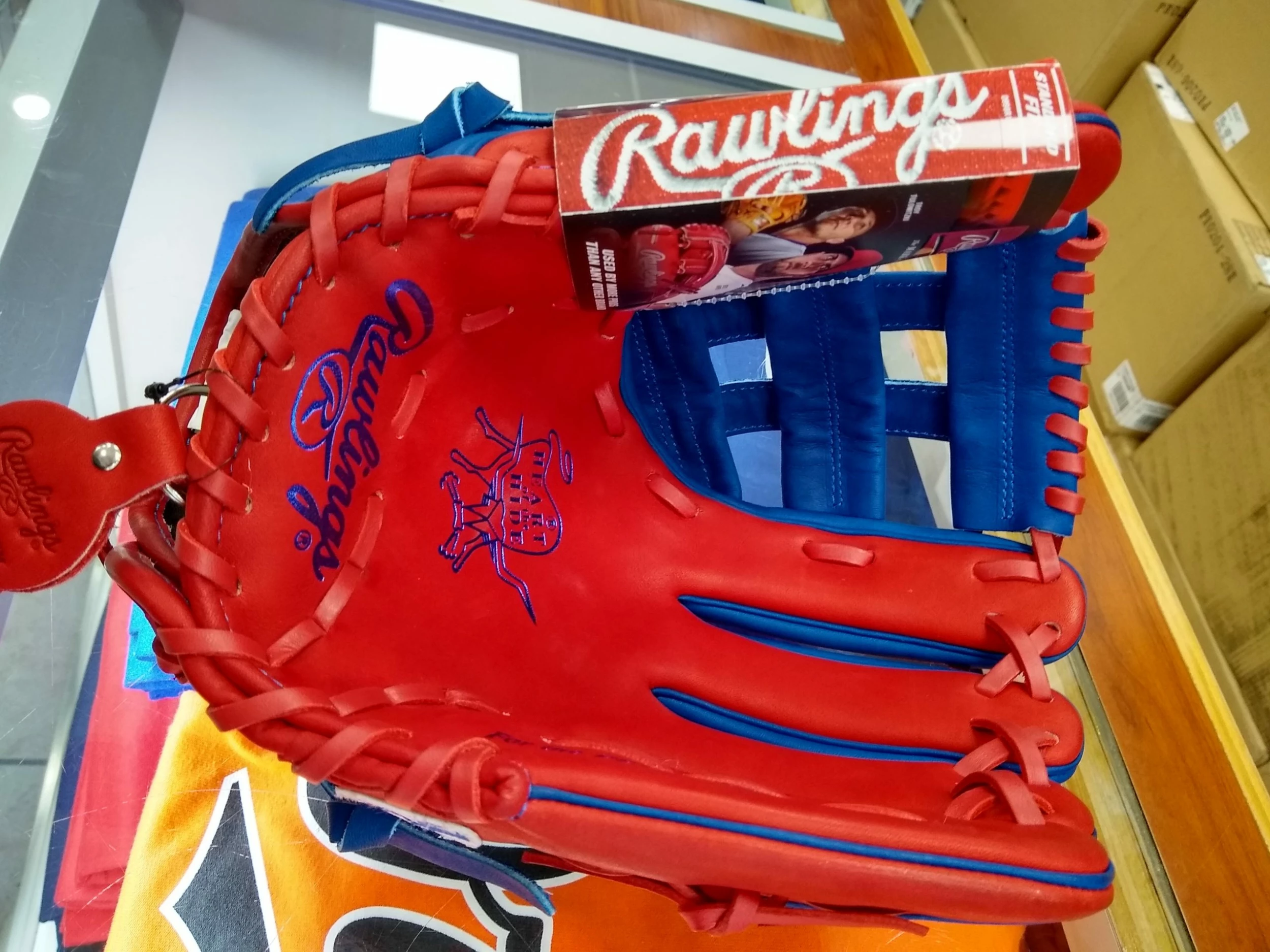 the Heart of the Hide Dominican Republic outfield glove. The DR country flag embroidered on its thumb is the perfect complement to its flashy, red, white and blue design. Some of the best players